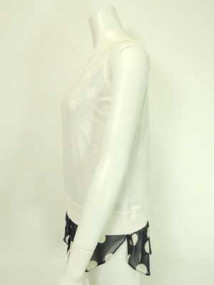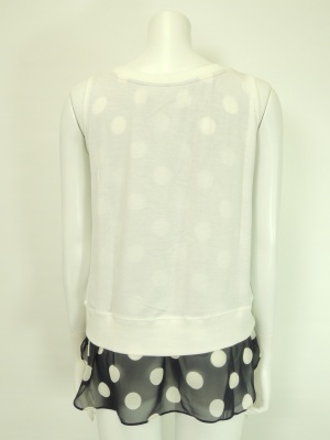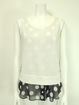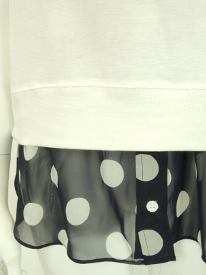 裾からのぞくドット柄のシフォン生地がポイントの重ね着風カットソー。
