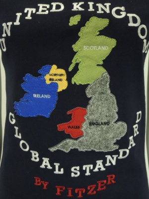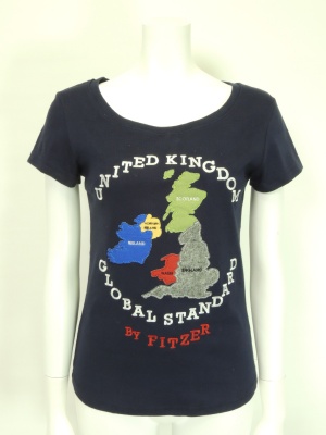 イギリスの地図をパッチワークしたTシャツ。(ロゴは刺繍)