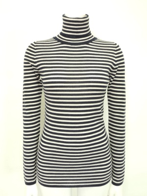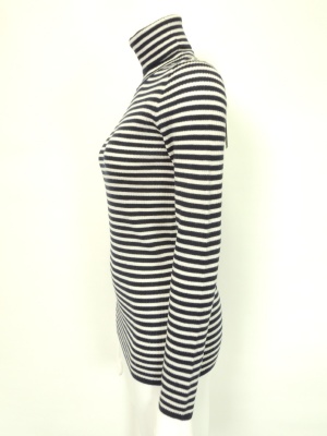 着まわしに欠かせない、シンプルなタートルリブニット。
