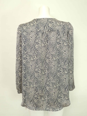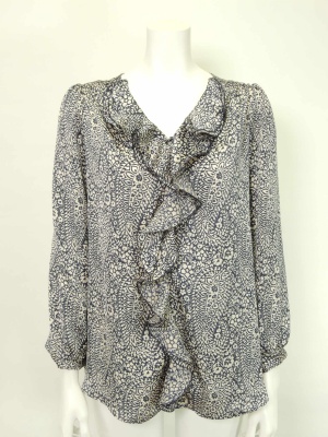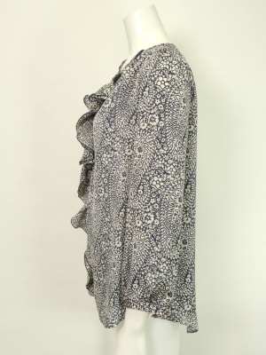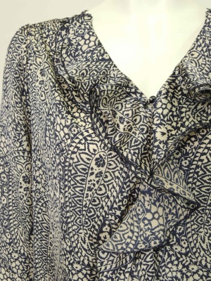 シックなペイズリー柄のフリルブラウス。
