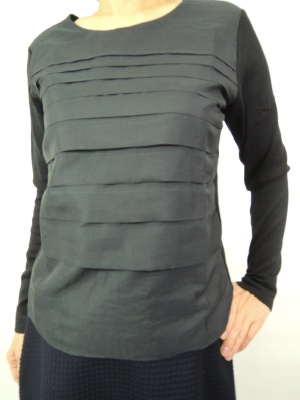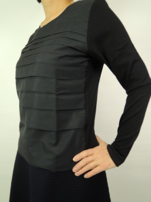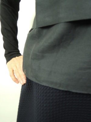 異素材の組み合わせでフロントはポリエステル生地のティアードの重ね