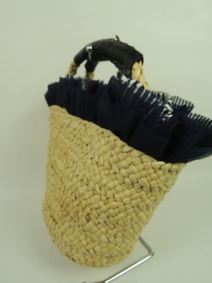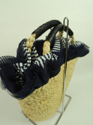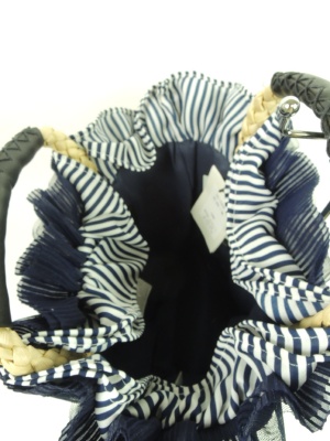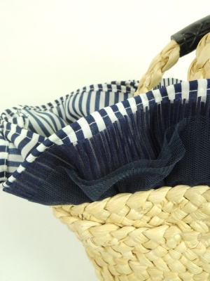 天然素材のフチはチュールとストライプ柄の生地でフリルに 高さはこのフリルまで測りました 幅は間口のところです