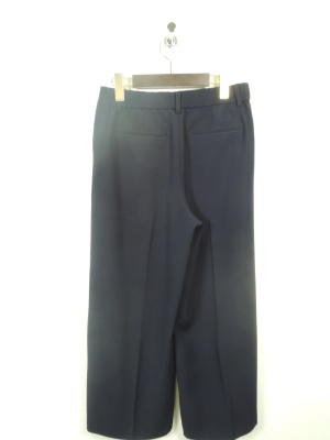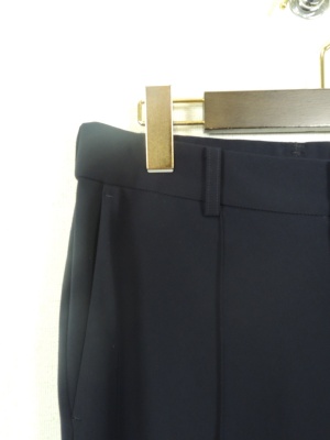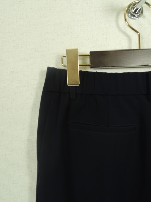 3色展開 3サイズ 裏なし 前開きファスナー 後ウエスト部分ゴム入り センターピンタック入り 裾脇18cm程度のベントスリット