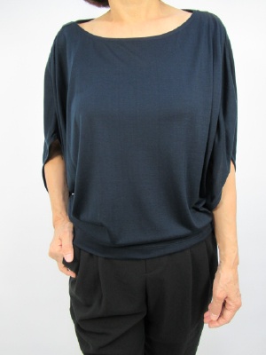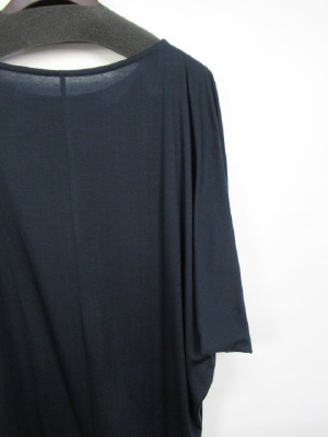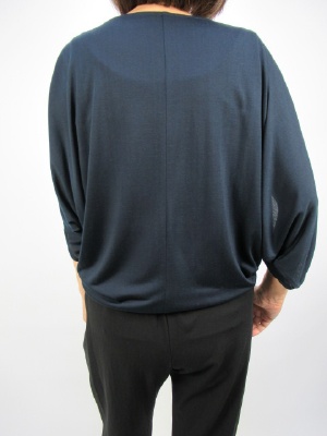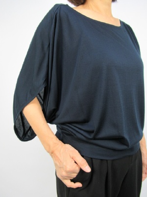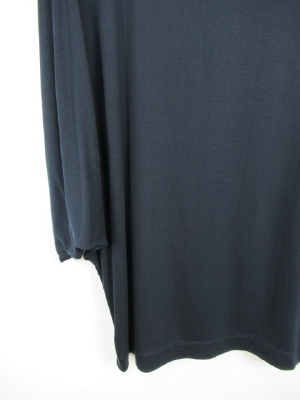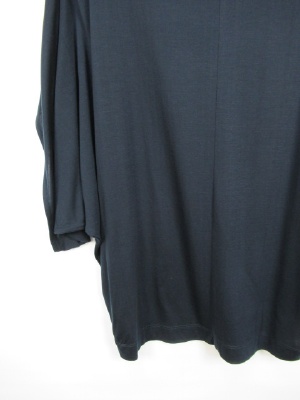落ち感のある素材なので裾は腰で止まるデザイン、ドレープがかったシルエット