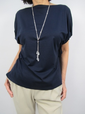 緩シルエットカットソー 袖はやや落ちて袖口はリボンで絞りふんわりさせる ややボートネック 手洗い可能