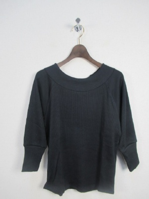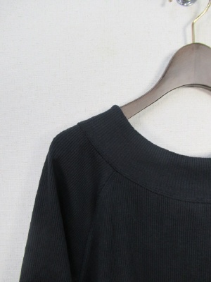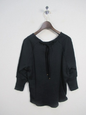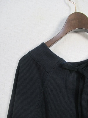 テレコ素材 ラグラン袖切り替え 七分袖 後ろ首のところレースアップ (別布) 裾はラウンドしてます 手洗い可能