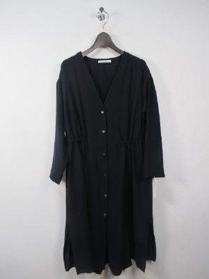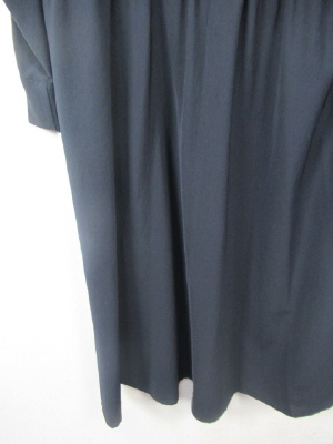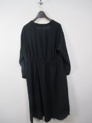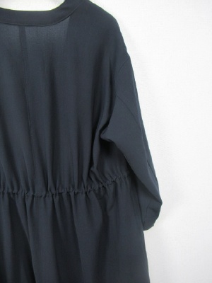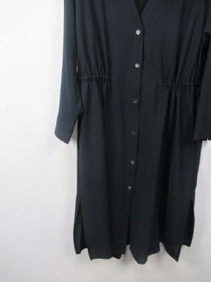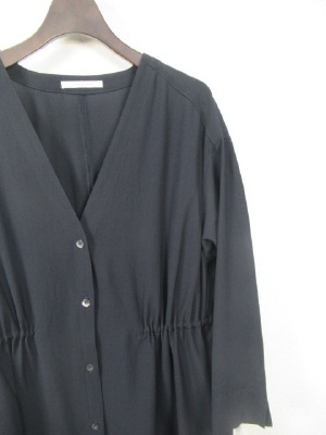 V開き 前上がり(ボタン)ウエスト内側で紐調整できる 両脇裾スリット(28cm) 裏地なし 袖口スリット