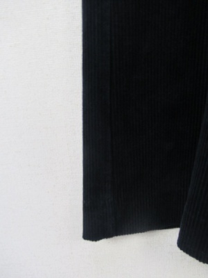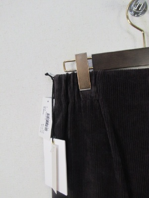 コーデュロイのワイドパンツ ウエスト脇にゴム入り 前ファスナー 裏地なし
