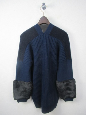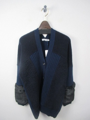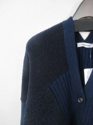 編み地がそれぞれ違う 素材も異素材を使用 Vネックのザックリカーデ