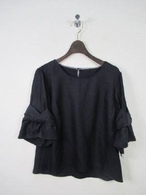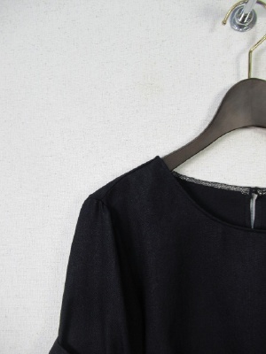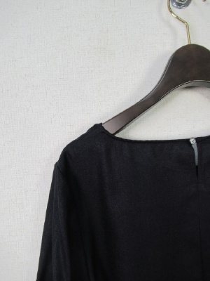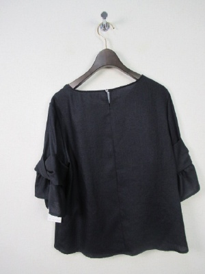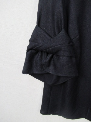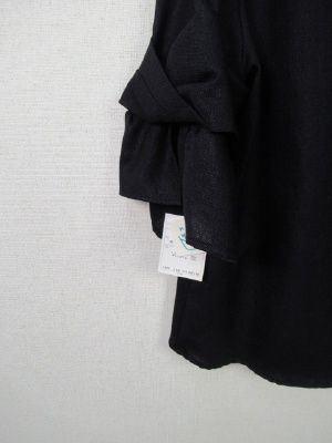 お袖部分はやや広がってます、切り替えでリボンのようなデザイン、裾は前上がりでラウンド、後ろボタン、手洗い可能