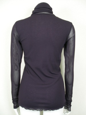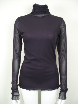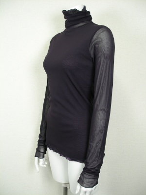 パワーメッシュのタートル。ネックとお袖はギャザー入りで、自然とクシュクシュに。身ごろのみ別素材の裏地付き。