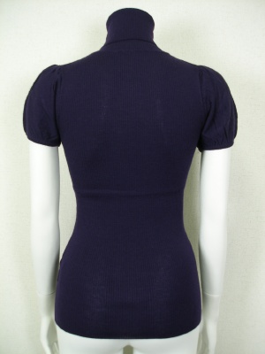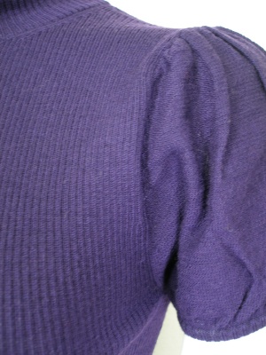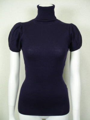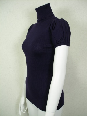 身ごろは柔らかくフィットするリブで、パフスリーブのタートルニット。ボリュームスカートにもよく合います。