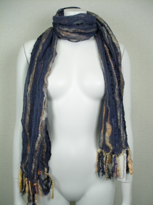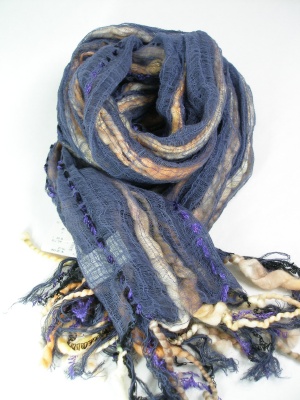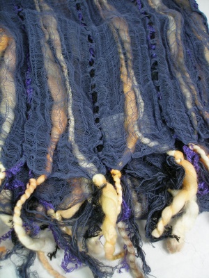 細い糸をルーズに編んだ所に、いろんな太さや質感の毛糸をさらに編み込んであります。ざっくりとナチュラルなイメージ。