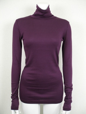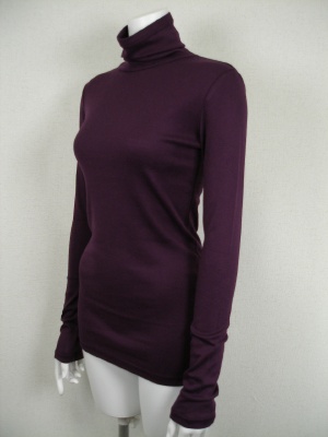 重ね着に便利なタートルネックカットソー。袖と着丈はやや長め、タートルはゆるめです。