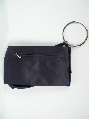 光沢のある素材でシックリボンのモチーフ。クラッチとして、リングを持って、付属のチェーンを付けて、といろんな使い方ができます。