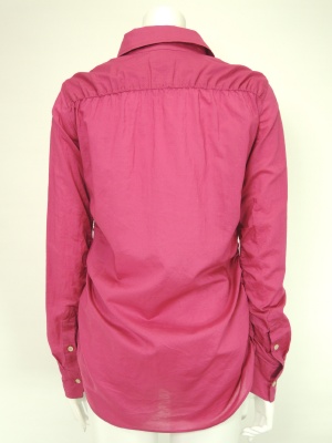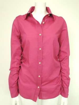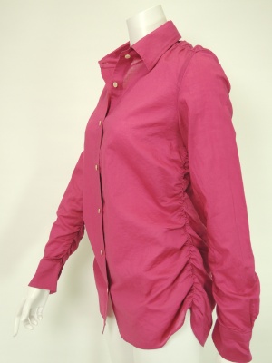 綿麻混のさらっとした生地を使用。 脇と袖内側にシャーリングを入れたクシュクシュシャツ。11号有。