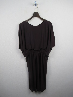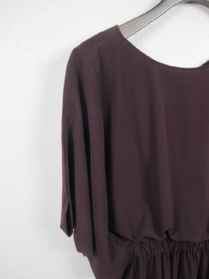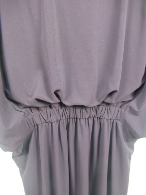 袖がドロップした状態で袖山に開くシルエット 身ごろはボリュームがあり ネックラインは後ろがV字に 後ろ身ごろはウエスト切り替えなく 前のみウエストゴムでギャザー寄せになる その分トップのたるみがでてふんわりデザインになる 手洗い可能 ペチコート付き
