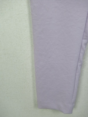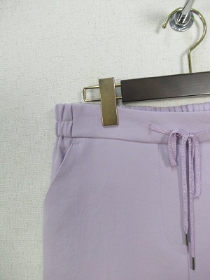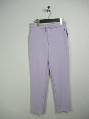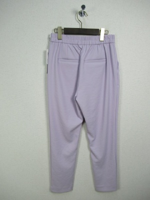 テーパードパンツ ウエスト後ろゴム ドロストタイプで 紐は同色を使う 脇ポケット 裏地なし。くるぶし丈 裾幅は9号で15.5cm サイズで5mmの差がある