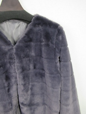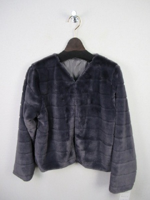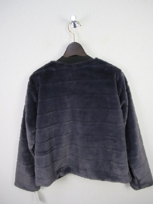 キレイ目のボアのボレロ風ジャケット 6cm程の間隔で線が合いル 裏付き V開き 鍵ホック一つ