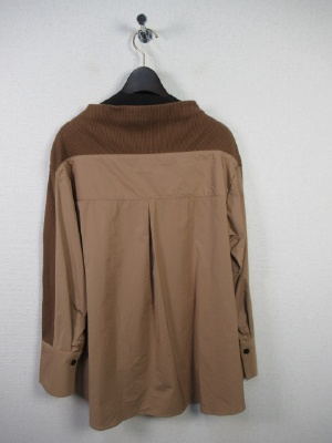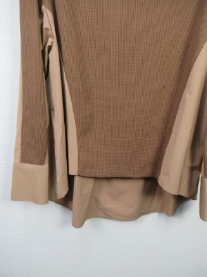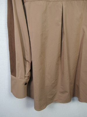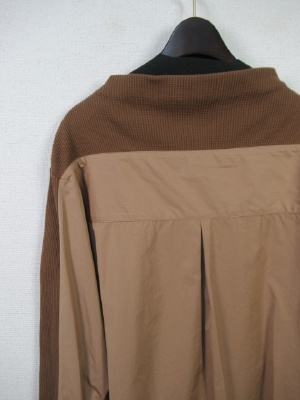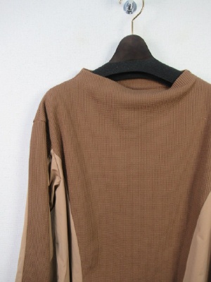 ワッフル生地と異素材の生地(同色)を配色にしたカットソー ややボトルネック 裾広がり 後ろ下がり カフス大きめ