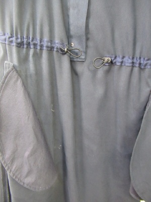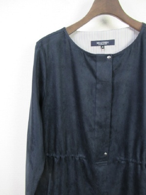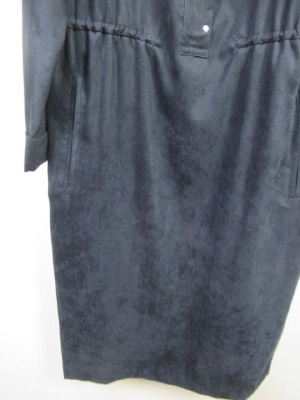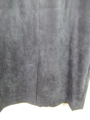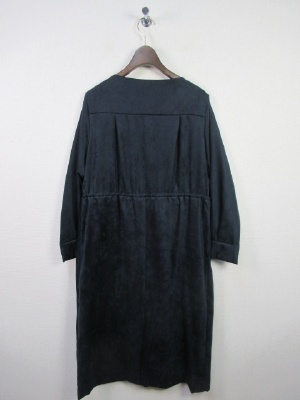 ポリエステルスエード 丸首 ウエストまで前開き ウエストは裏から絞りが出来るタイプ 裏地なし 切り込みポケット 後ろベントスリット