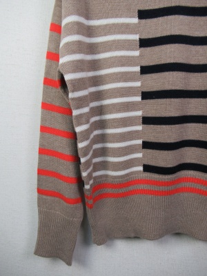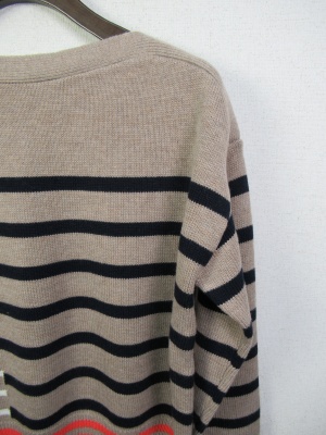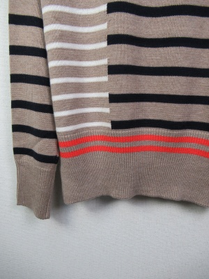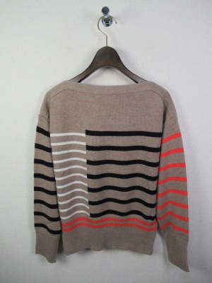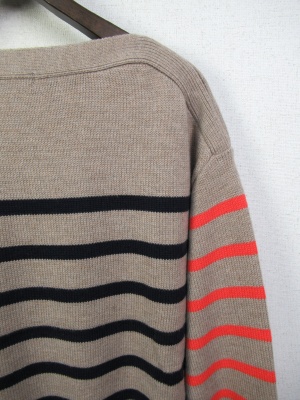 ボーダー柄それぞれの色使いと幅違いがデザインされたボートネックのニット