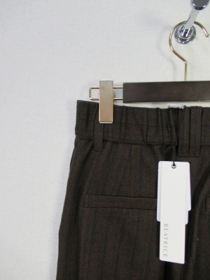 ワイドパンツ タック入り ヘリンボーンにブルーグリーンのラインが2cm間隔で入ってます 裏地無し ウエストベルト通し有り 前ファスナー 脇ポケット