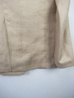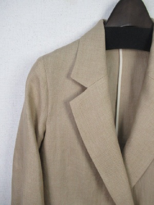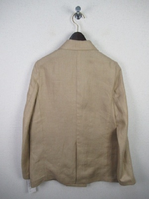 麻のジャケット ビックシルエットでダブルボタン ザックリ着るタイプ 裏地なし フラップポケット 後ろはベントスリット