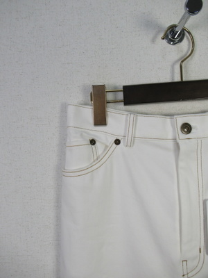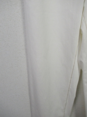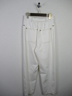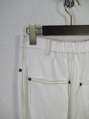 ワイドパンツ ウエストマーク 裏なし 前ファスナー ウエスト後ろゴム入り おしりの所に貼りポケット ステッチはベージュ系 手洗い可能