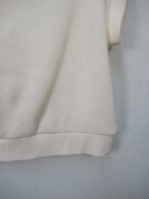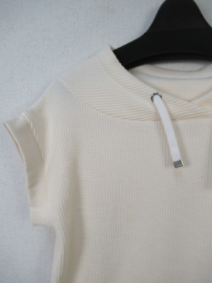 ワッフル生地 フレンチスリーブ 衿ぐりは広めでヒモ調整できる 手洗い可能