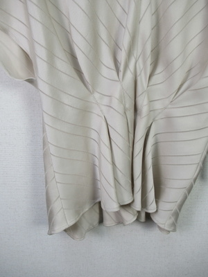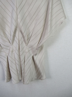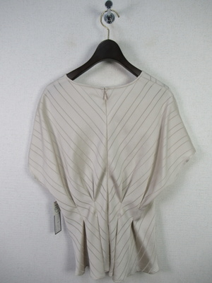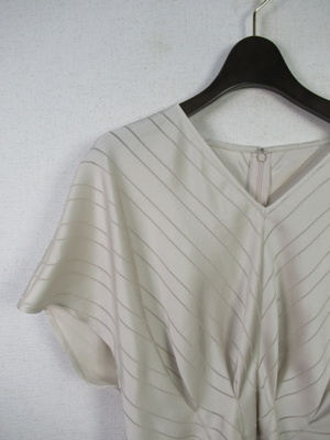 やや光沢感のある生地 Vネック ブラウス カットワークのように等間隔でストライプの織模様 前後ウエストのところタック寄せ 後ろファスナー 手洗い可能