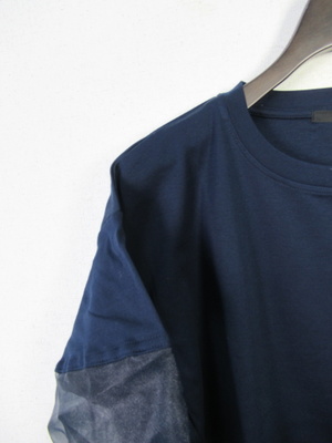 ボリューム袖のカットソー、途中オーガンジー生地をドッキングさせた袖、手洗い可能