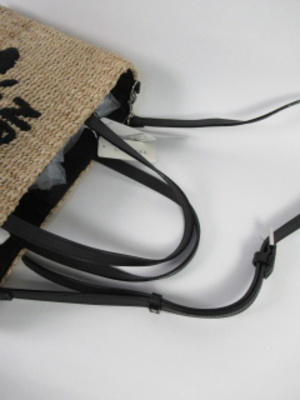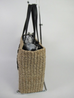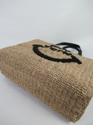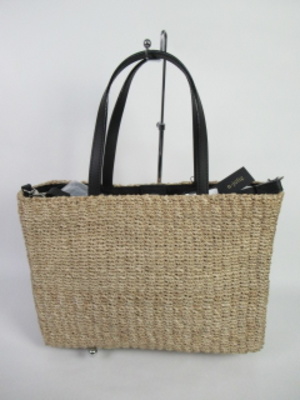天然素材(マニラ麻)のバッグ、持ち手と取り外し可能なショルダーベルト付き(2WAY使用)で素材は牛革
