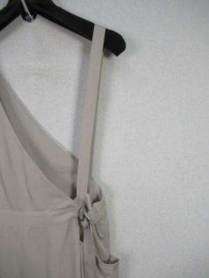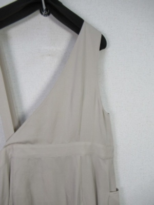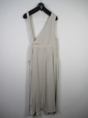 再生繊維(セルロース) 左右肩紐の形状が違います 。スカート部分は左ウエストのところにタックが入って内側にボタンがあります。ラップ風のデザイン。左右ポケット 裏地なし 手洗い可能 細いほうの肩紐(左)は73pです 肩紐調整ができませんのでご注意ください。