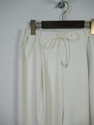 ウェスト総ゴム、ドロストデザイン、裏地あり、ひざ下の長さ、タックデザイン、脇ポケット