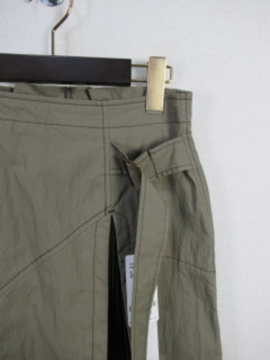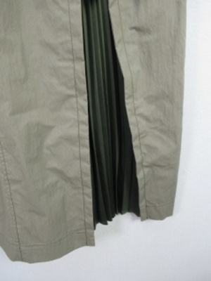 左前だけ同色に異素材でプリーツ生地を挟んだラップ風スカート 裏地なし ウエスト後ろゴム入り 後ろファスナー