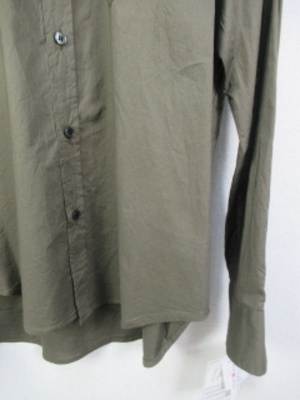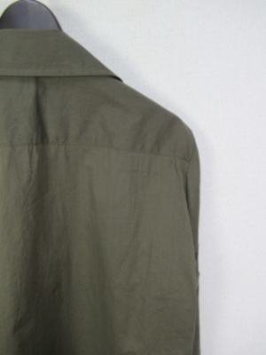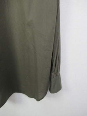 幅広のデザインが特徴 スキッパー衿の開襟シャツ 開いてる部分は釦なし 裾はラウンドして前上がりデザイン 手洗い可能