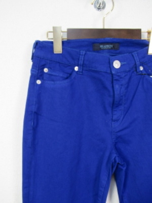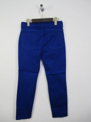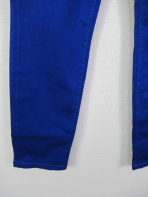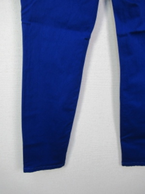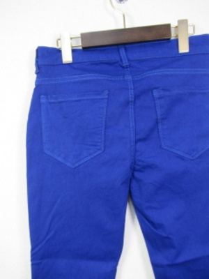 ストレッチの効いた細身のパンツ、白とブルー、脇ポケット・ヒップ部分にポケットデザイン