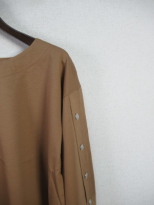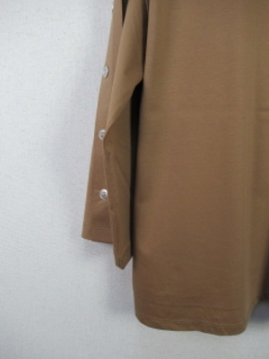『晩夏初秋 新作』 ドロップショルダー 袖巾先に向かって広がったデザイン 七分袖 袖山にシルバーの釦4個飾り 前上り裾シルエット 脇スリット入り手洗い可能