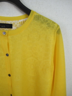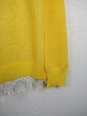長袖カーデ 身頃内側レース2枚合わせ 裾からレースがのぞくデザイン脇スリット 手洗い可能