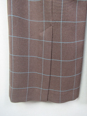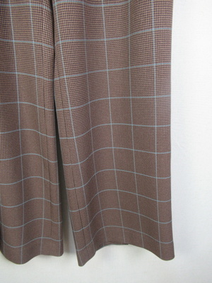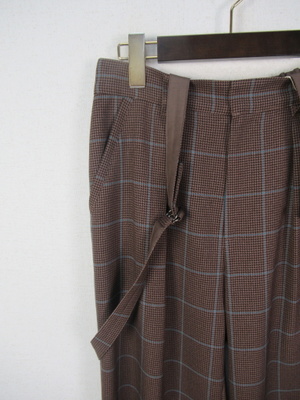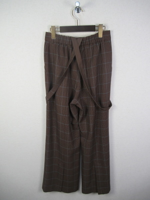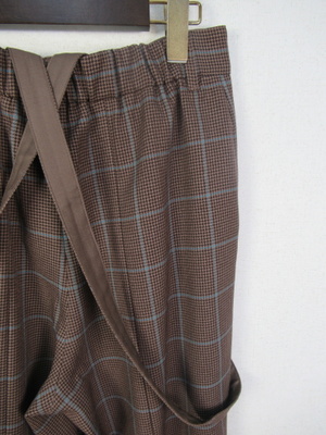サスペンダー付きワイドパンツ (取り外し可能)マドラスチェック (千鳥格子)後ろベントスリット入り(約25cmほど)裏地なし 前ファスナー ウエスト後ろゴム サイドポケット有 手洗い可能