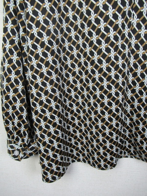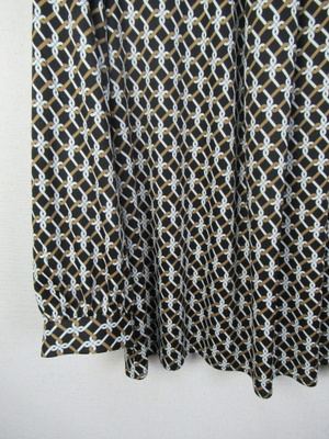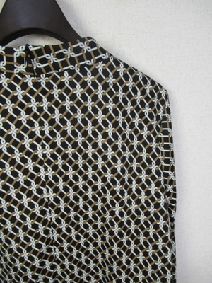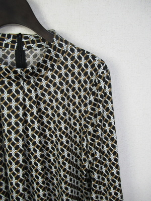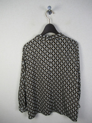 幾何学模様のカットソー地のブラウス 前タック スタンドカラー 後ろファスナー 袖カフス 手洗い可能 スカートあり