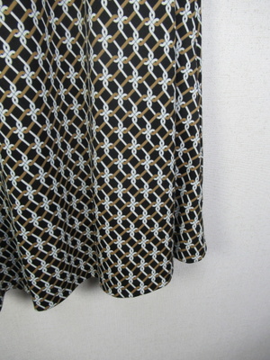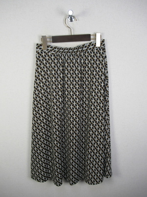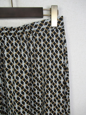 幾何学模様のスカート 左側にタック入り ウエストベルト風 裏地あり 手洗い可能 ブラウスあり
