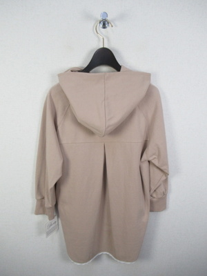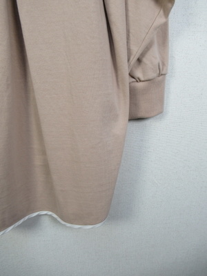 プルオーバーのフード衿 前後差有 前身ごろの裾に異素材組み合わせ 手洗い可能