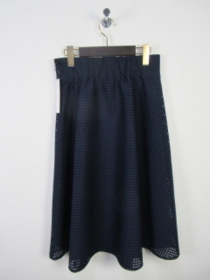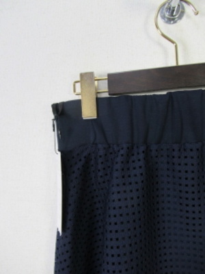 ウエスト後ろゴム 横ファスナー カットワークレース地のフレアデザイン ブラウスあり