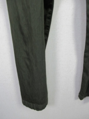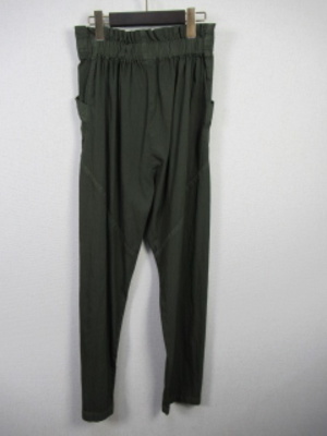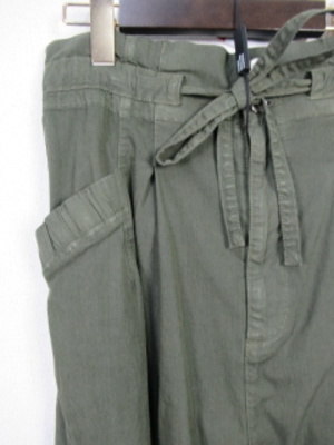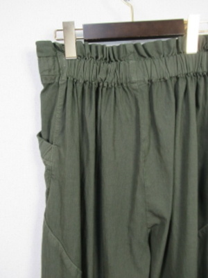 ワーク系のパンツ タック入り ウエストリボン調整 裏地なし膝当たり 斜めに切替 手洗い可能