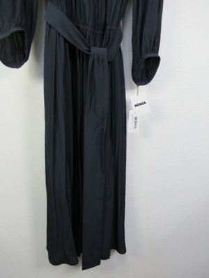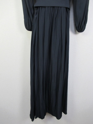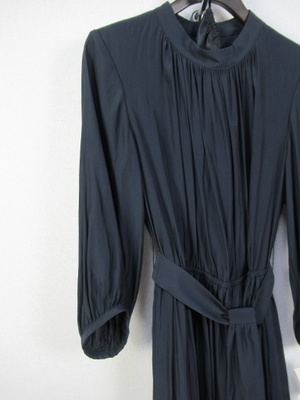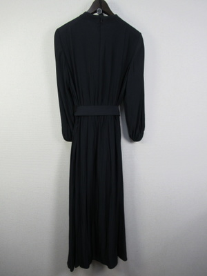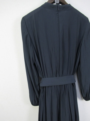 とろみとツヤ感のある ポリエステル生地 ウエストゴム 七分袖 共のサッシュベルト 後ろファスナー 手洗い可能 七分袖 ペチコート付き