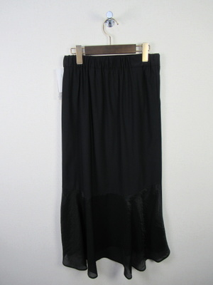 ミモレ丈のスカート ウエストゴム 後ろ途中から切り替え異素材 裏地付き 手洗い可能