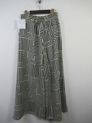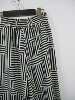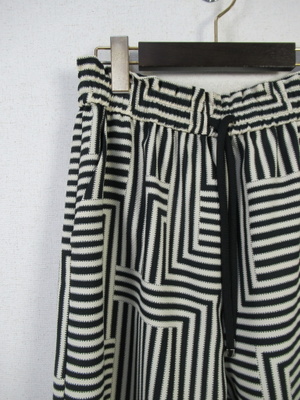 幾何学模様生地 ワイド ウエストゴム 紐調整 裏地あり 手洗い可能 フリーサイズ