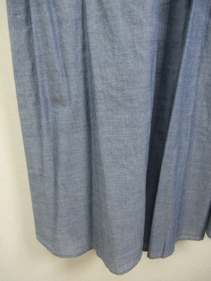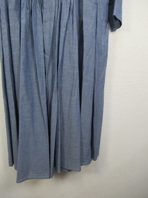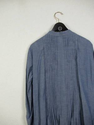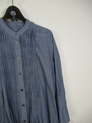 柔らかなダンガリー生地で前後に細かいピンタック 前ボタン 前開き 手洗い可能
